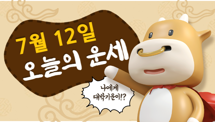 7월 12일 오늘의 운세 잘 확인하셨나요? 오늘 하루도 즐겁고 행복한 일 가득하시길 기원합니다.