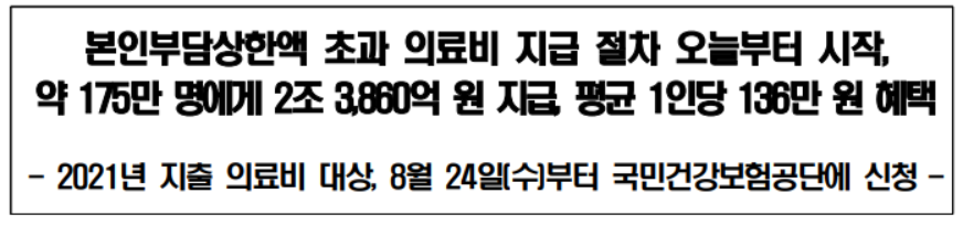 과도한 의료비로 인한 경제적인 부담을 덜어주기 위해 연간 본인 일부부담금의 총액이 개인별 상한 금액을 초과하는 경우 그 초과금액을 건강보험공단이 부담하는 제도 입니다.